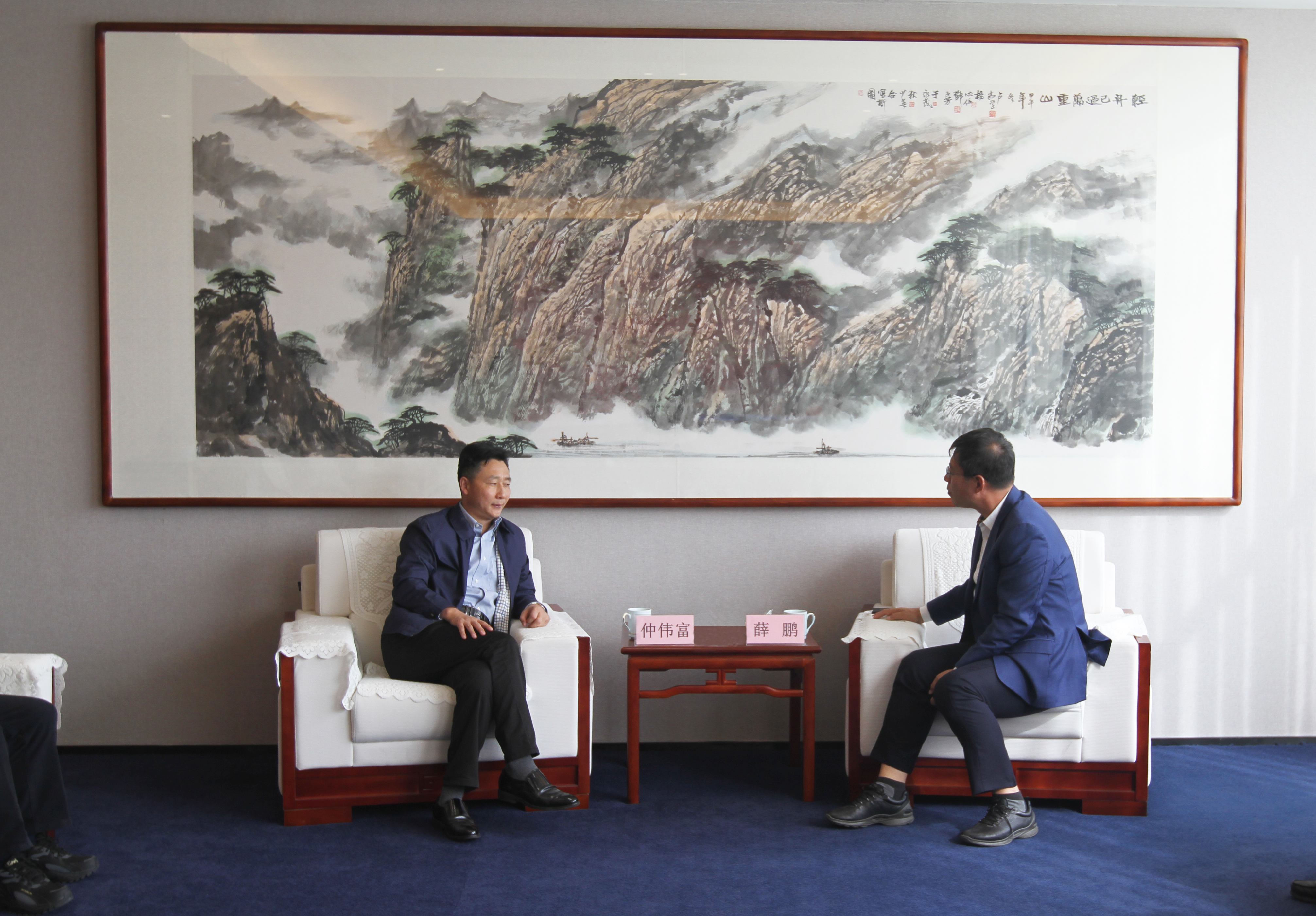 10月19日下午,西海岸新区区委常委、纪委书记仲伟富同志带领相关科室人员到走访服务的骨干企业168网调研指导工作,荣泰建设集团董事长薛鹏热情接待了仲伟富书记一行。