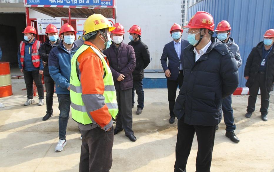 刘玉勇副局长首先来到了集团承建的西海岸古镇口科技孵化中心项目工地现场,刘局长详细询问了项目质量、安全、疫情防控等情况,并现场询问施工人员开工前安全培训情况、四项制度执行情况、劳动合同签订等情况,要求施工企业必须严控工程建设中的质量、安全、防疫、除尘、开工等各项工作,主管和监管部门必须做好监管与服务相结合,确保工程质量和安全生产,促进并推动建筑企业高效、高质量发展。刘局长对荣泰集团积极响应与落实政府政策与号召,全面做好复工复产准备和疫情防控,大力推行项目精细化管理工作表示了认可与肯定。