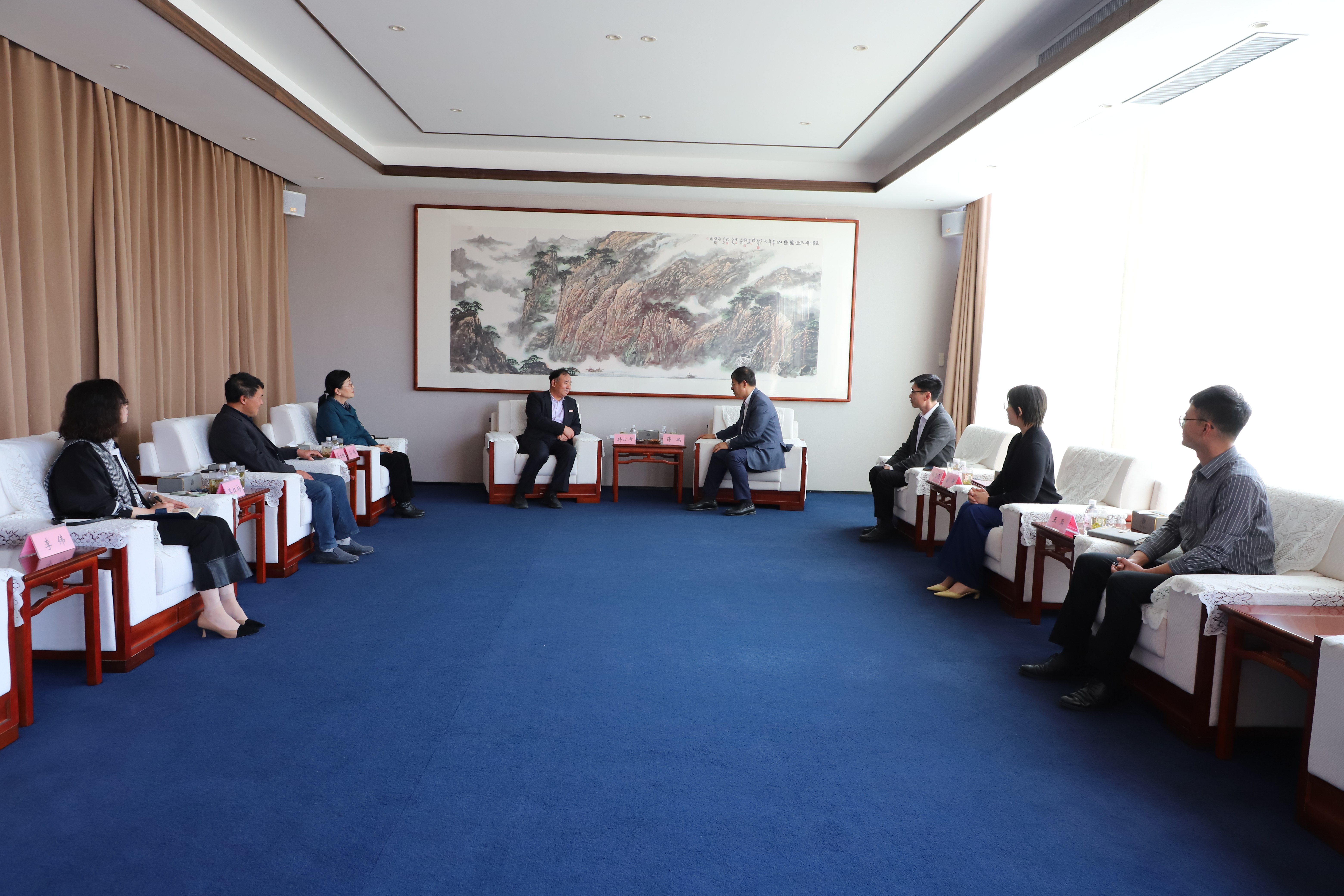 为精准对接人才需求,512日上午,青岛滨海学院校长韩方希一行访问荣泰集团,董事长薛鹏及有关人员陪同交流。