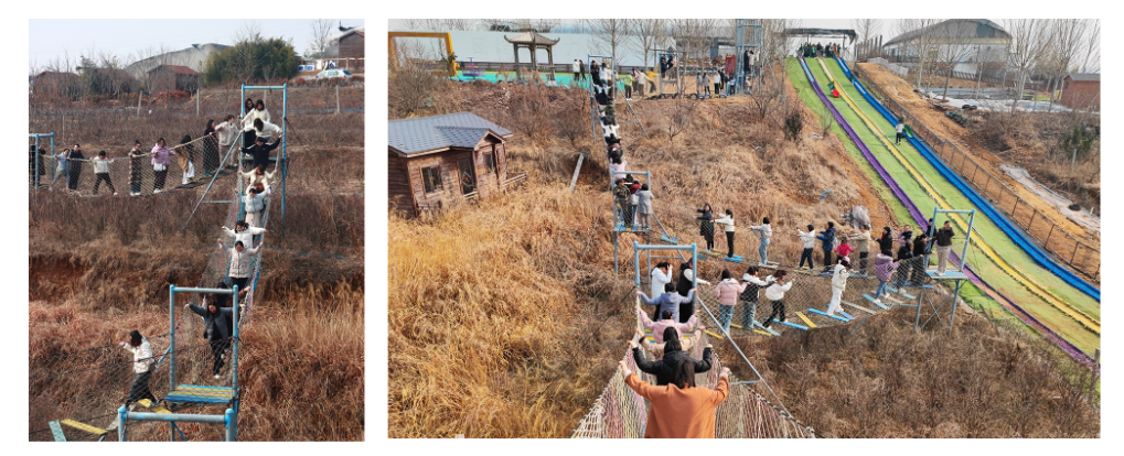 在专业教练指导下,女员工们化身“丛林女侠”,在索道、独木桥等关卡中,互相鼓励,勇敢突破自我,展现了女性坚韧不拔的精神风貌。